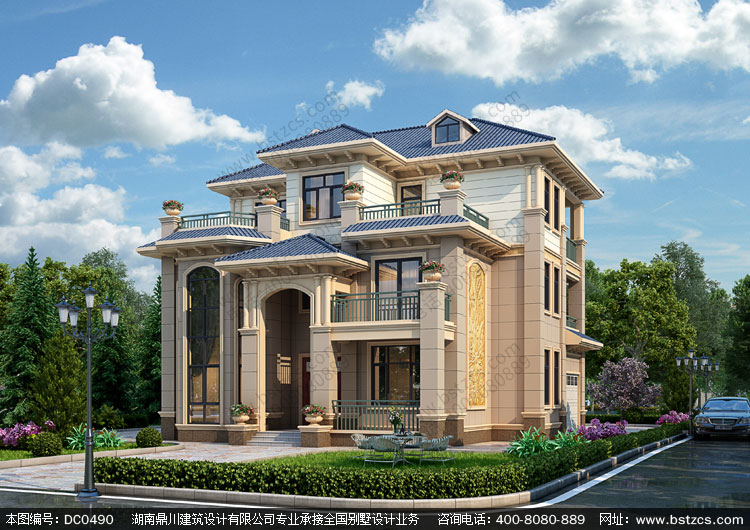 歐式三層帶露臺車庫別墅設計圖紙_三層別墅圖紙,鼎川圖紙超市