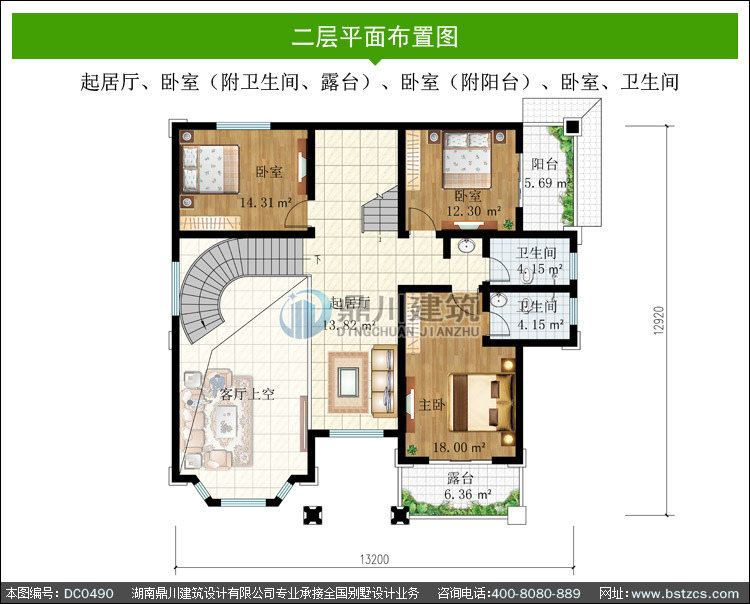 | 二 層: | 起居廳、臥室(附衛(wèi)生間、露臺)、臥室(附陽臺)、臥室、衛(wèi)生間 | |||