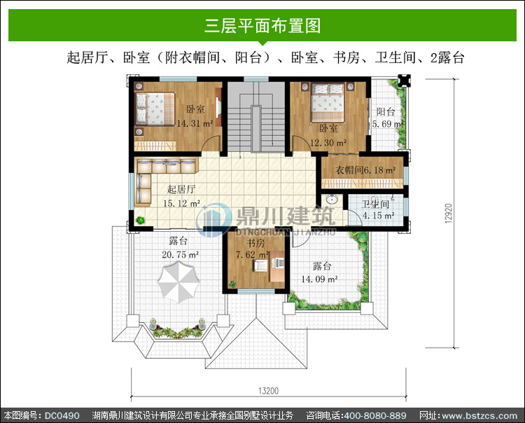| 開間: 13.2米 | 進深: 12.92米 | 占地面積: 155.71平方米 | 建筑面積: 417.92平方米 |