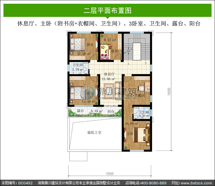 | 二 層: | 休息廳、主臥(附書房+衣帽間、衛(wèi)生間)、3臥室、衛(wèi)生間、露臺(tái)、陽(yáng)臺(tái) | |||