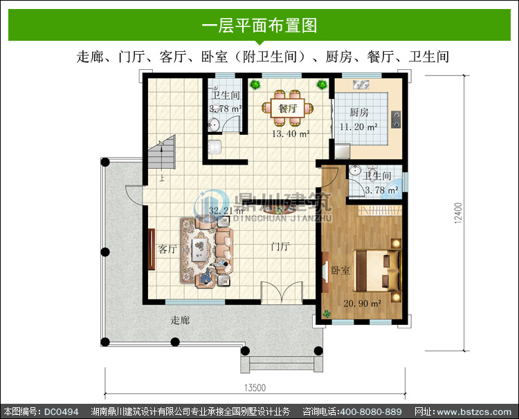 | 開間: 13.5米 | 進深: 12.4米 | 占地面積: 143.85平方米 | 建筑面積: 401.45平方米 |