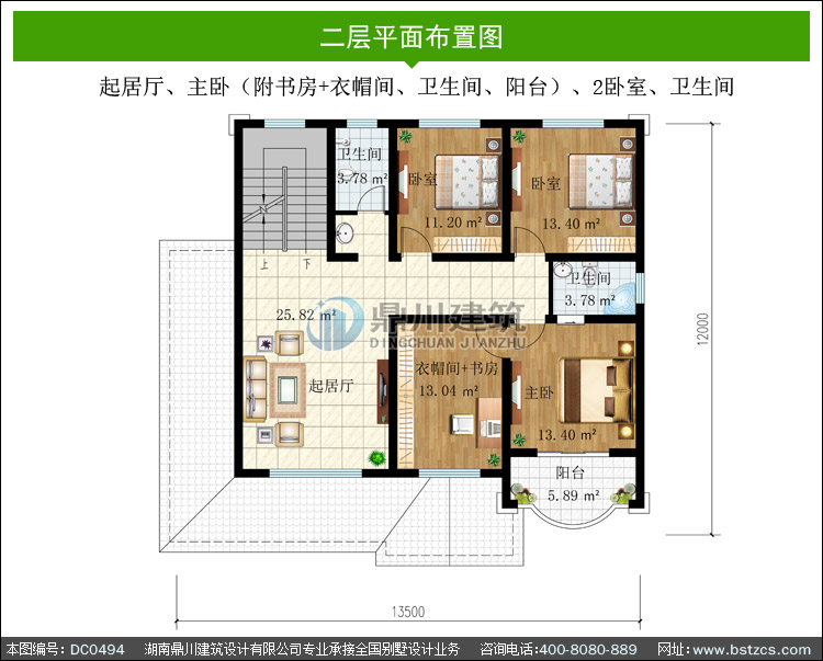 | 二 層: | 起居廳、主臥(附書房+衣帽間、衛(wèi)生間、陽臺)、2臥室、衛(wèi)生間 | |||