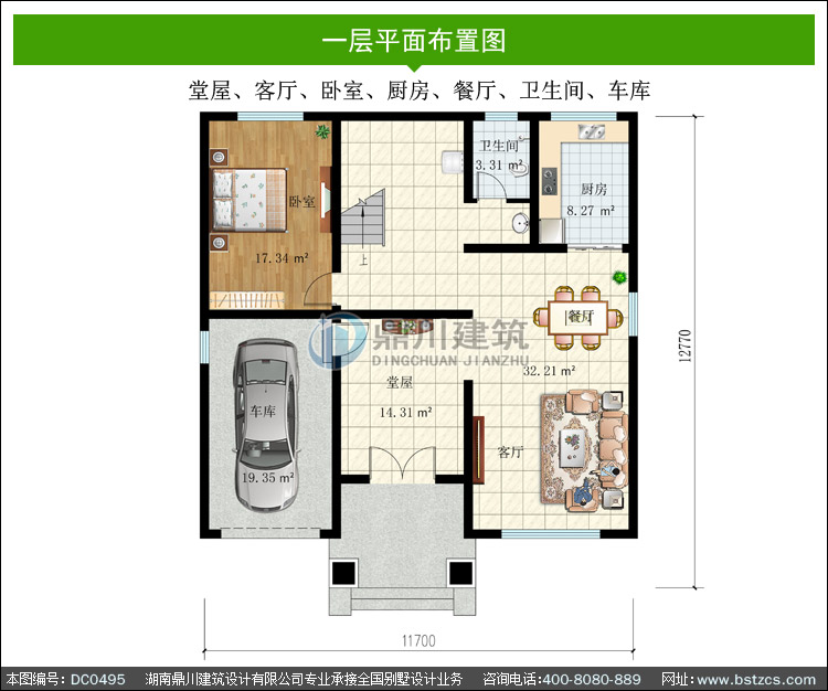 | 一 層: | 堂屋、客廳、臥室、廚房、餐廳、衛(wèi)生間、車庫 | |||
