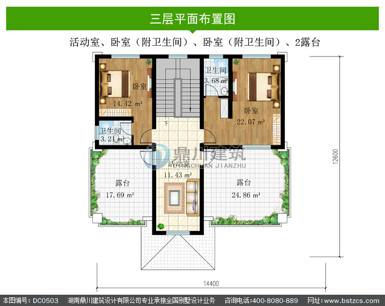 三 層: 活動室、臥室(附衛(wèi)生間)、臥室(附衛(wèi)生間)、2露臺