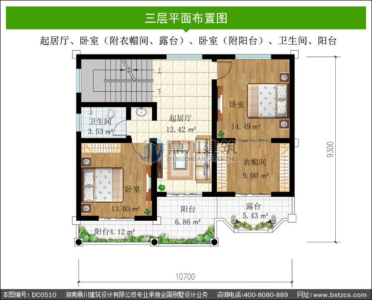 | 三 層: | 起居廳、臥室(附衣帽間、露臺(tái))、臥室(附陽臺(tái))、衛(wèi)生間、陽臺(tái) | |||