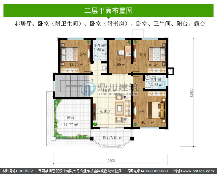 | 二 層: | 起居廳、臥室(附衛(wèi)生間)、臥室(附書房)、臥室、衛(wèi)生間、陽(yáng)臺(tái)、露臺(tái) | |||