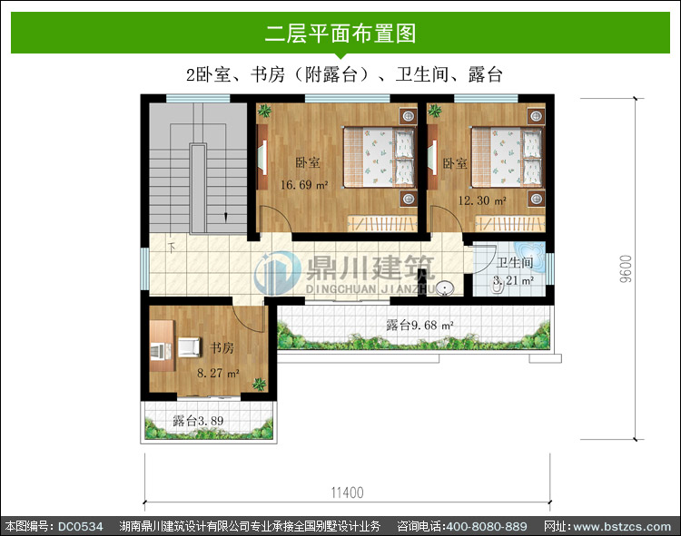 | 二 層: | 2臥室、書房(附露臺)、衛(wèi)生間、露臺 | |||