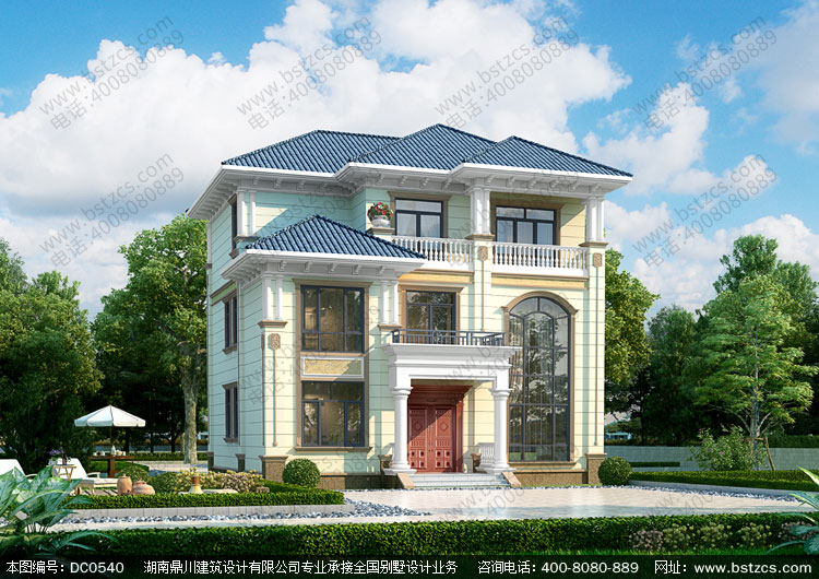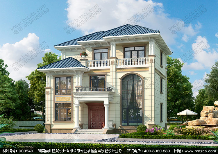 復(fù)式三層帶車(chē)庫(kù)歐式別墅外觀效果圖及施工圖設(shè)計(jì)_農(nóng)村三層別墅設(shè)