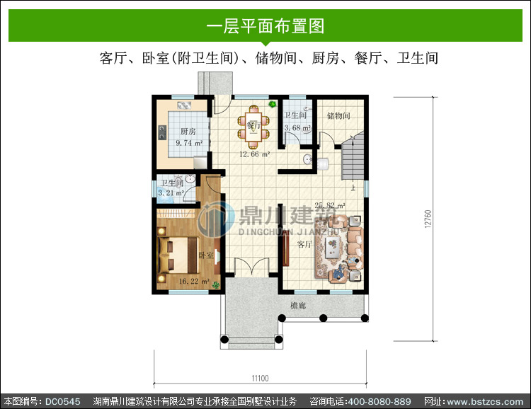 | 一 層: | 客廳、臥室(附衛(wèi)生間)、儲(chǔ)物間、廚房、餐廳、衛(wèi)生間 | |||