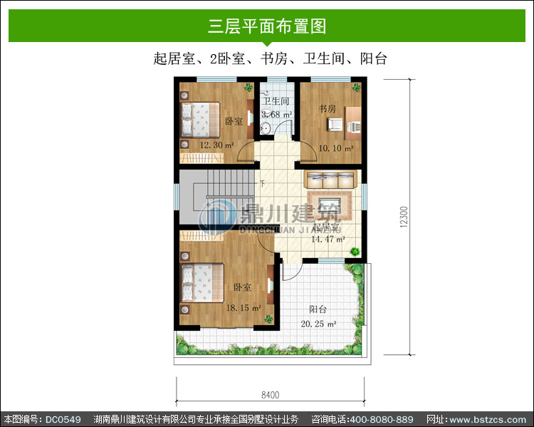 | 三 層: | 起居室、2臥室、書房、衛(wèi)生間、陽(yáng)臺(tái) | |||
