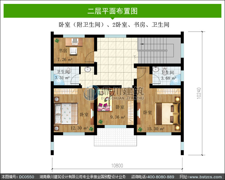 | 二 層: | 臥室(附衛(wèi)生間)、2臥室、書房、衛(wèi)生間 | |||