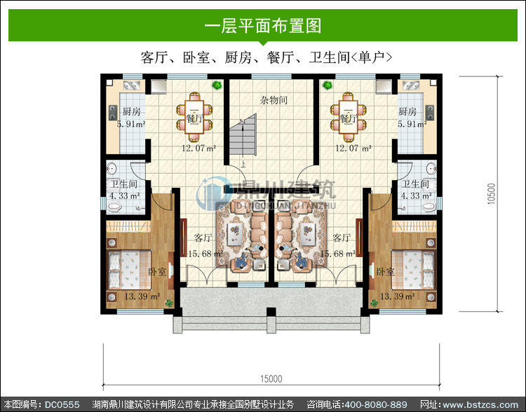 | 開間: 15米 | 進(jìn)深: 10.5米 | 占地面積: 164.55平方米 | 建筑面積: 396.77平方米 |