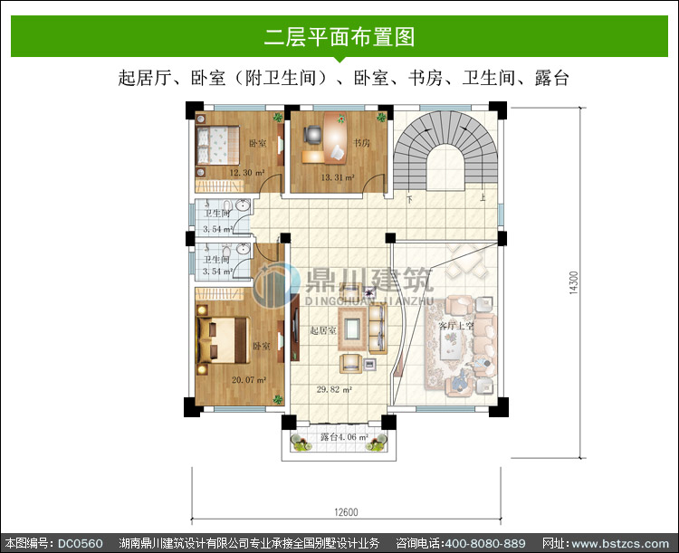 | 二 層: | 起居廳、臥室(附衛(wèi)生間)、臥室、書(shū)房、衛(wèi)生間、露臺(tái) | |||