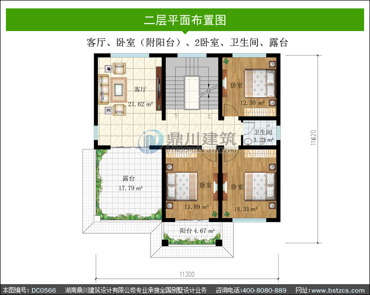 | 二 層: | 客廳、臥室(附陽臺(tái))、2臥室、衛(wèi)生間、露臺(tái) | |||