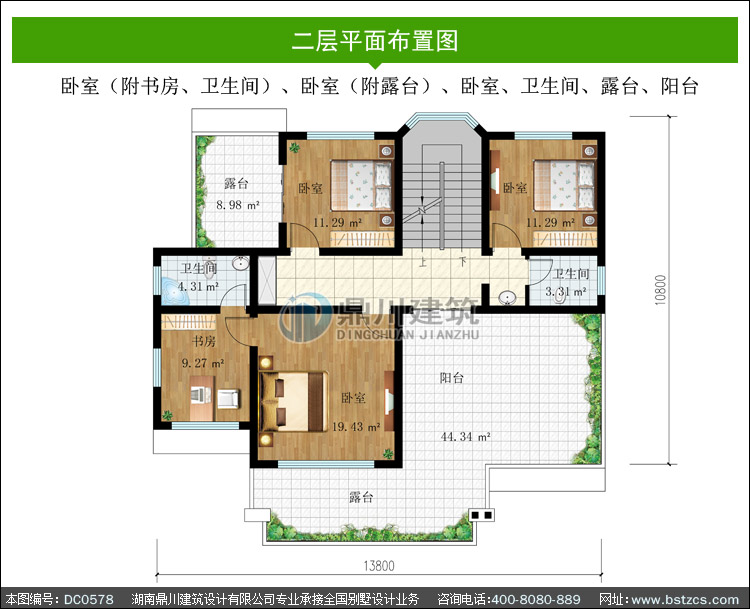 | 二 層: | 臥室(附書房、衛(wèi)生間)、臥室(附露臺(tái))、臥室、衛(wèi)生間、露臺(tái)、陽臺(tái) | |||