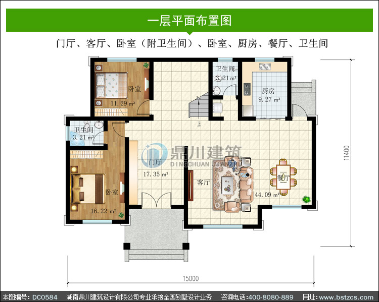 | 開間: 15米 | 進(jìn)深: 11.4米 | 占地面積: 150.60平方米 | 建筑面積: 356.55平方米 |