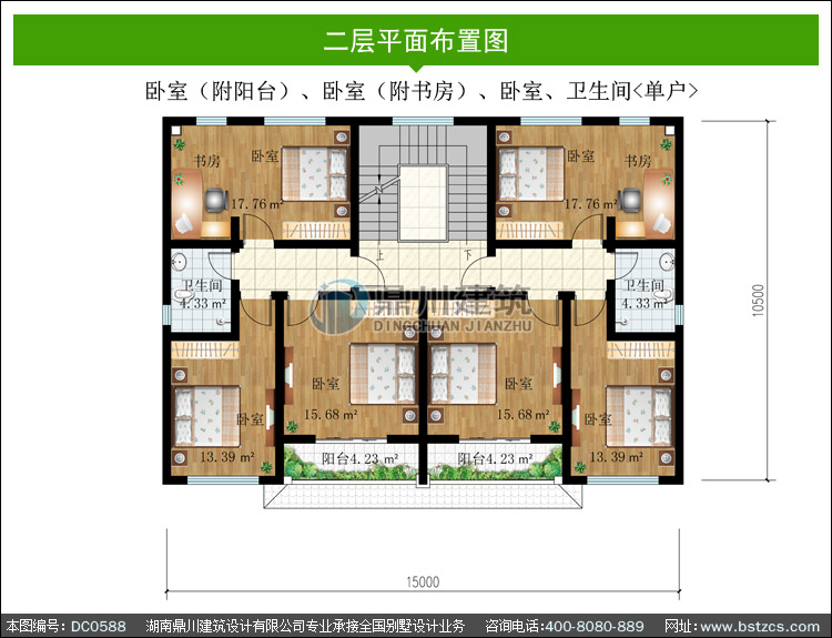| 二 層: | 臥室(附陽臺(tái))、臥室(附書房)、臥室、衛(wèi)生間 | |||