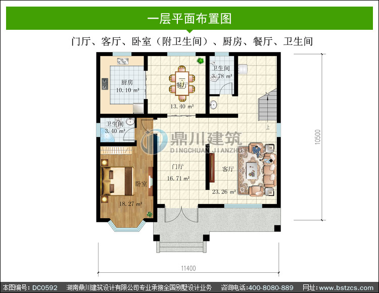| 一 層: | 門(mén)廳、客廳、臥室(附衛(wèi)生間)、廚房、餐廳、衛(wèi)生間 | |||