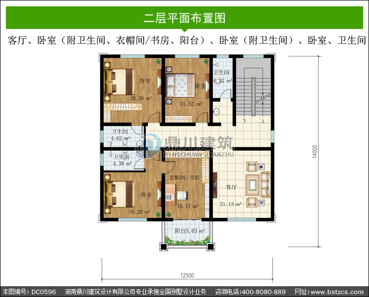 | 二 層: | 客廳、臥室(附衛(wèi)生間、衣帽間/書房、陽臺(tái))、臥室(附衛(wèi)生間)、臥室、 衛(wèi)生間 | |||