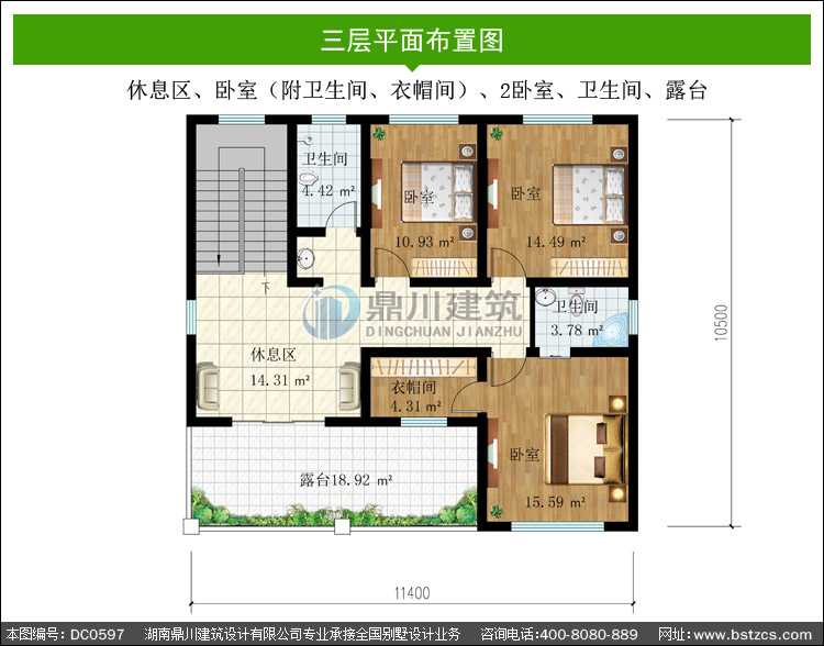 | 三 層: | 休息區(qū)、臥室(附衛(wèi)生間、衣帽間)、2臥室、衛(wèi)生間、露臺(tái) | |||