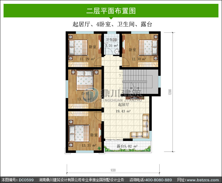 | 二 層: | 起居廳、4臥室、衛(wèi)生間、露臺 | |||