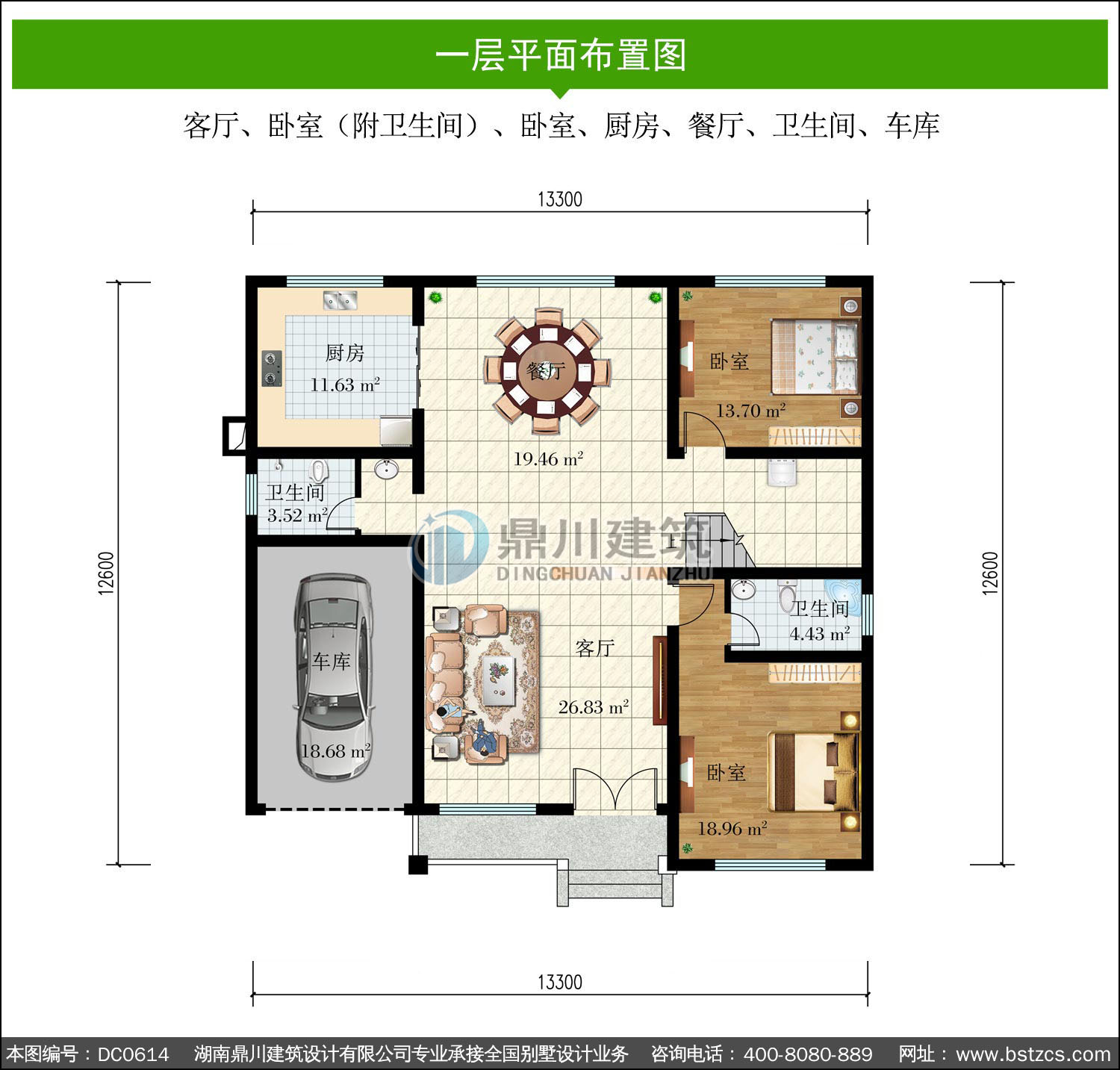 新農(nóng)村二層帶車庫別墅效果圖及施工圖_農(nóng)村房屋設(shè)計圖紙,鼎川建筑