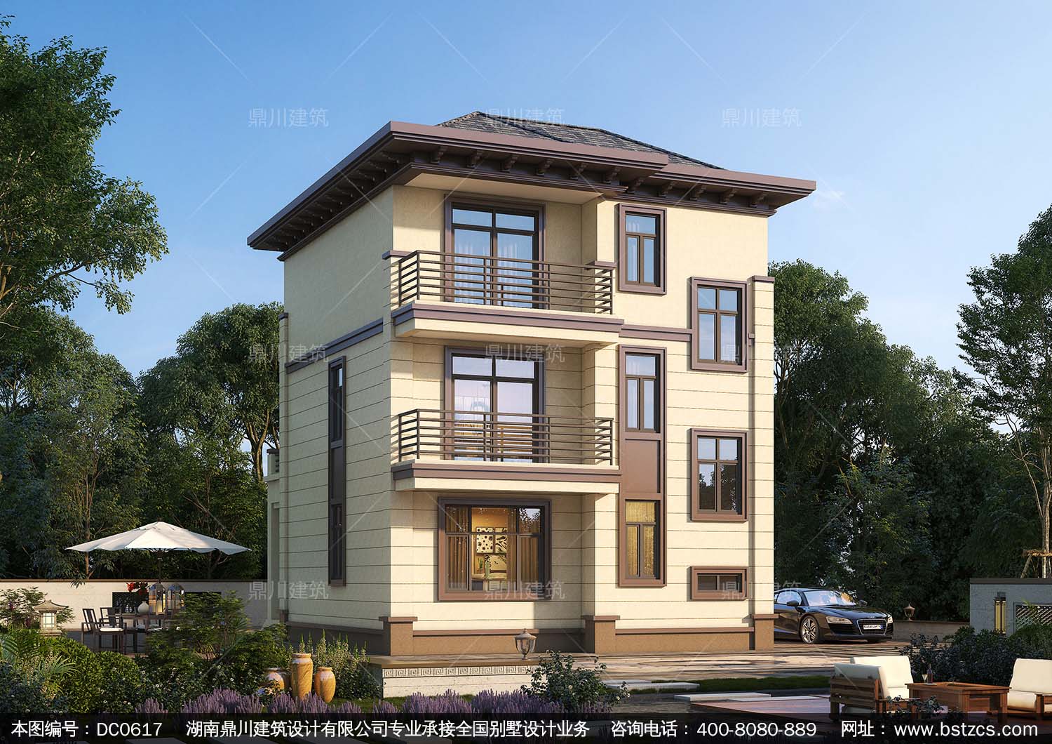 三層帶露臺中式小戶型別墅設計圖紙_農村三層別墅圖紙,鼎川建筑