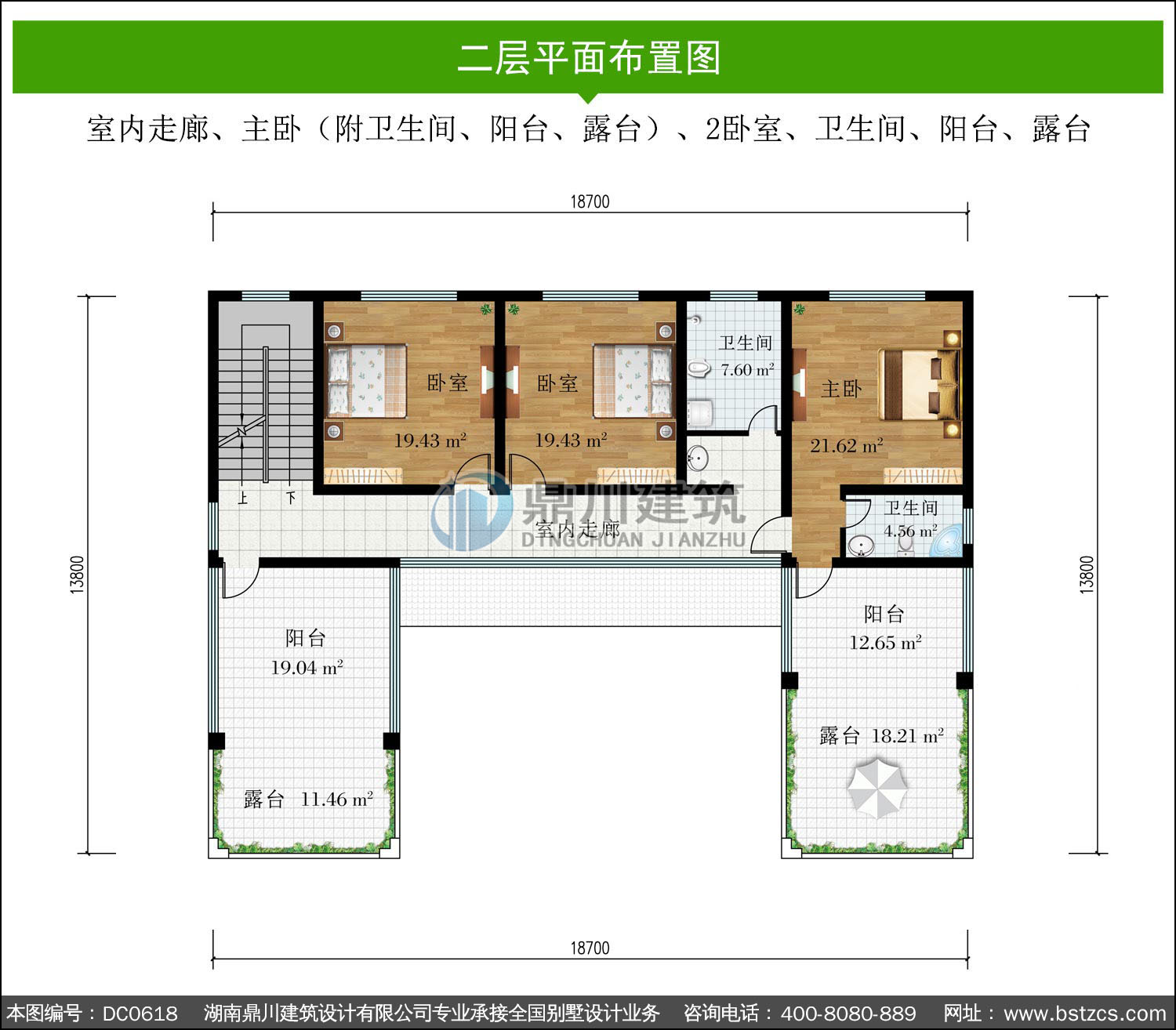 | 二 層: | 室內(nèi)走廊、主臥(附衛(wèi)生間、陽臺、露臺)、2臥室、衛(wèi)生間、陽臺、露臺 | |||