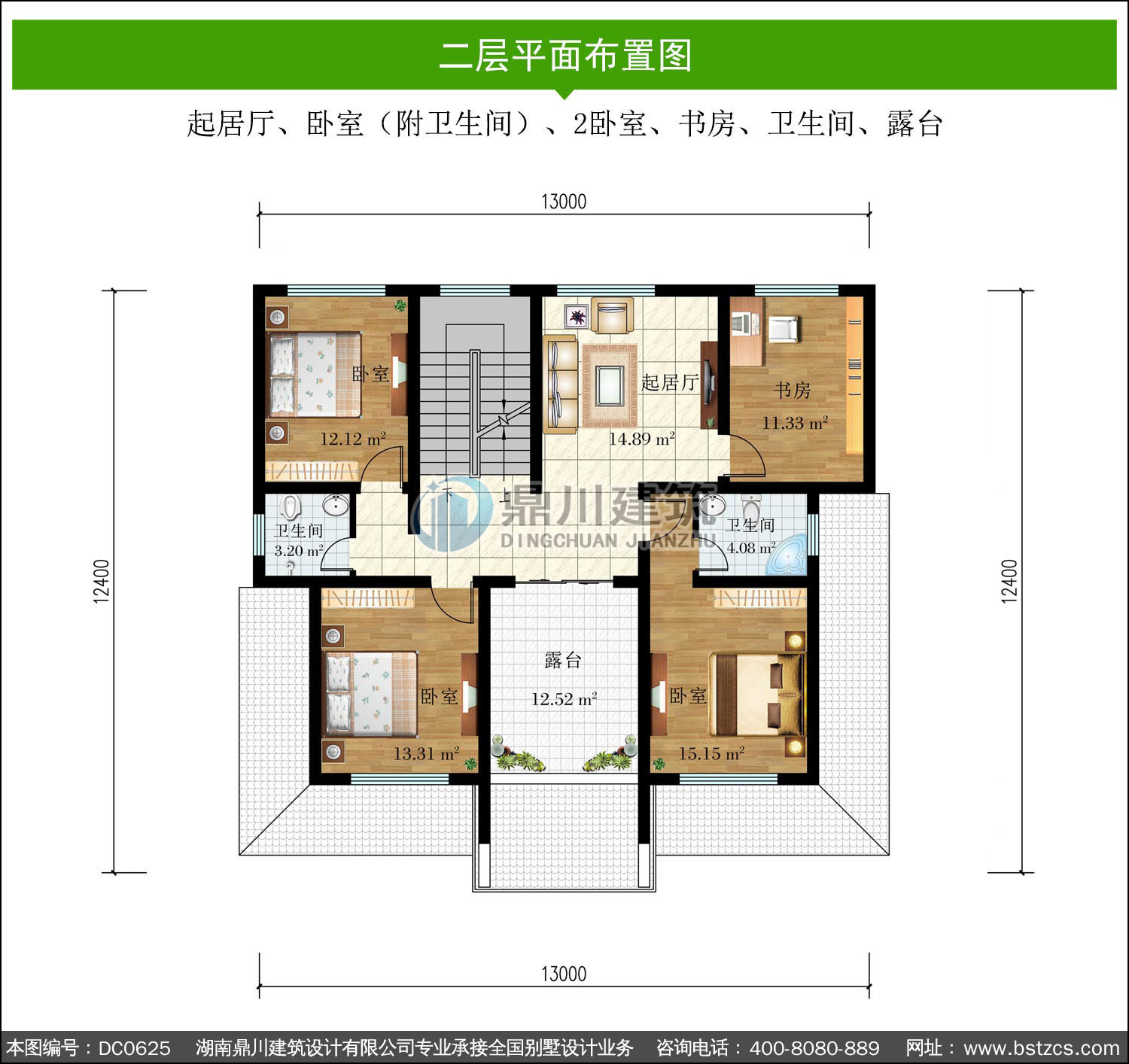 | 二 層: | 起居廳、臥室(附衛(wèi)生間)、2臥室、書房、衛(wèi)生間、露臺(tái) | |||