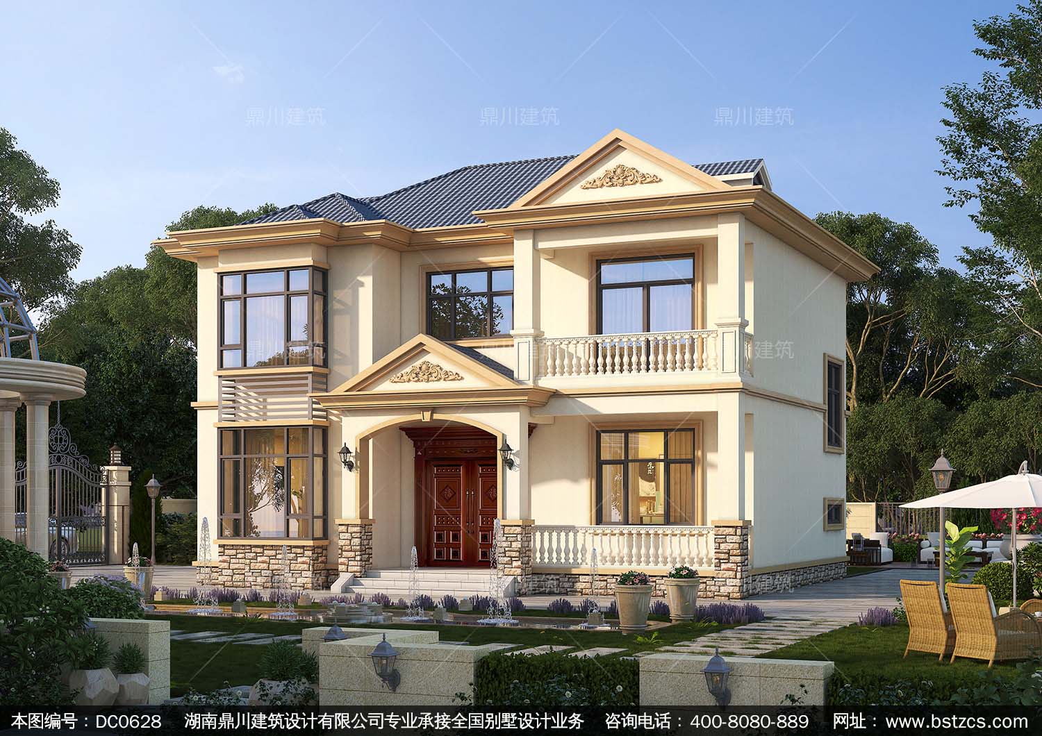 歐式二層帶陽臺小別墅設計效果圖及施工圖_農(nóng)村兩層自建房別墅圖紙,鼎川建筑