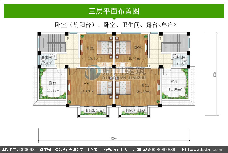 | 三 層: | 臥室(附陽(yáng)臺(tái))、臥室、衛(wèi)生間、露臺(tái) | |||