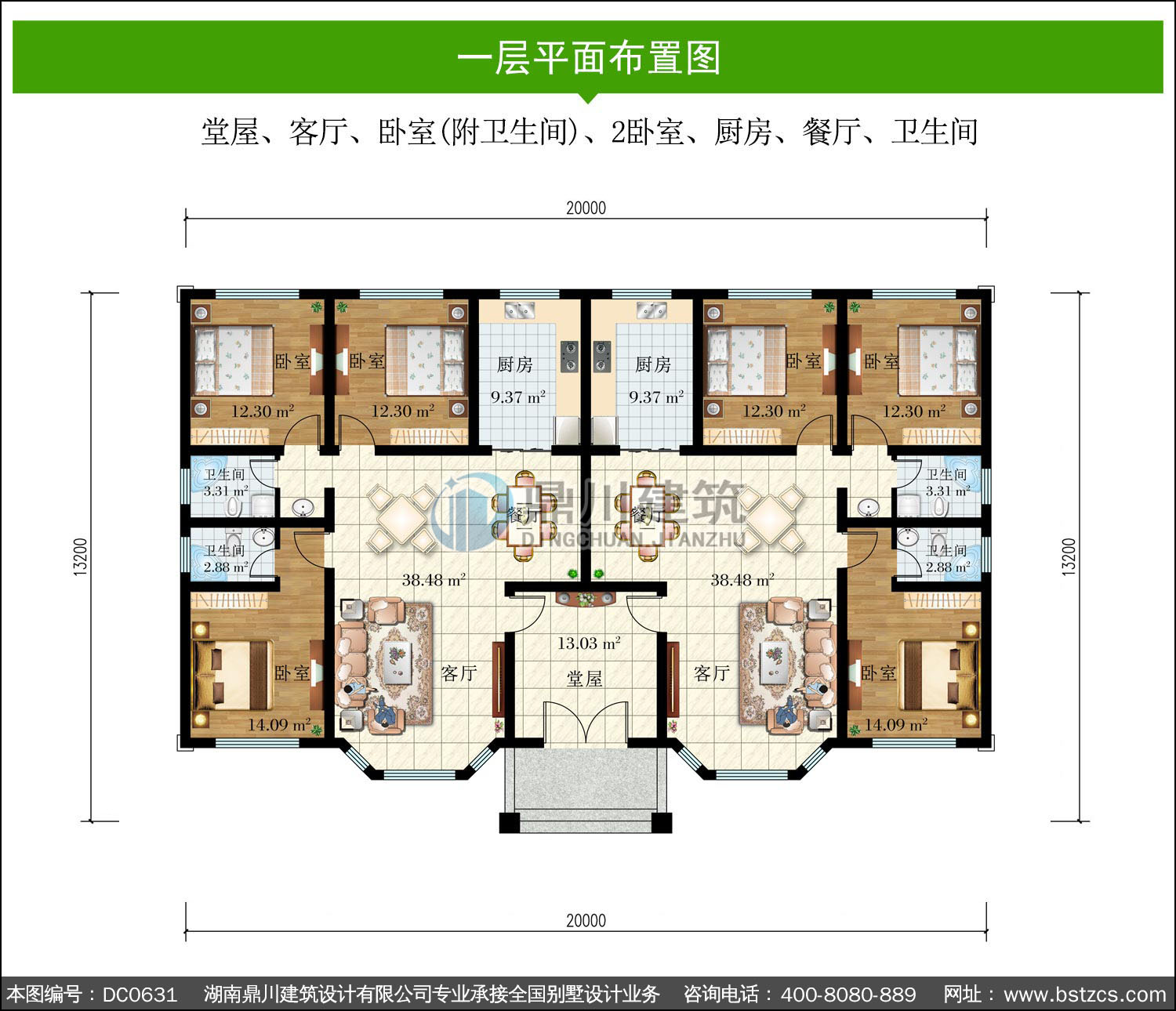 | 開間: 20米 | 進(jìn)深: 13.2米 | 占地面積: 242.84平方米 | 建筑面積: 330.83平方米 |