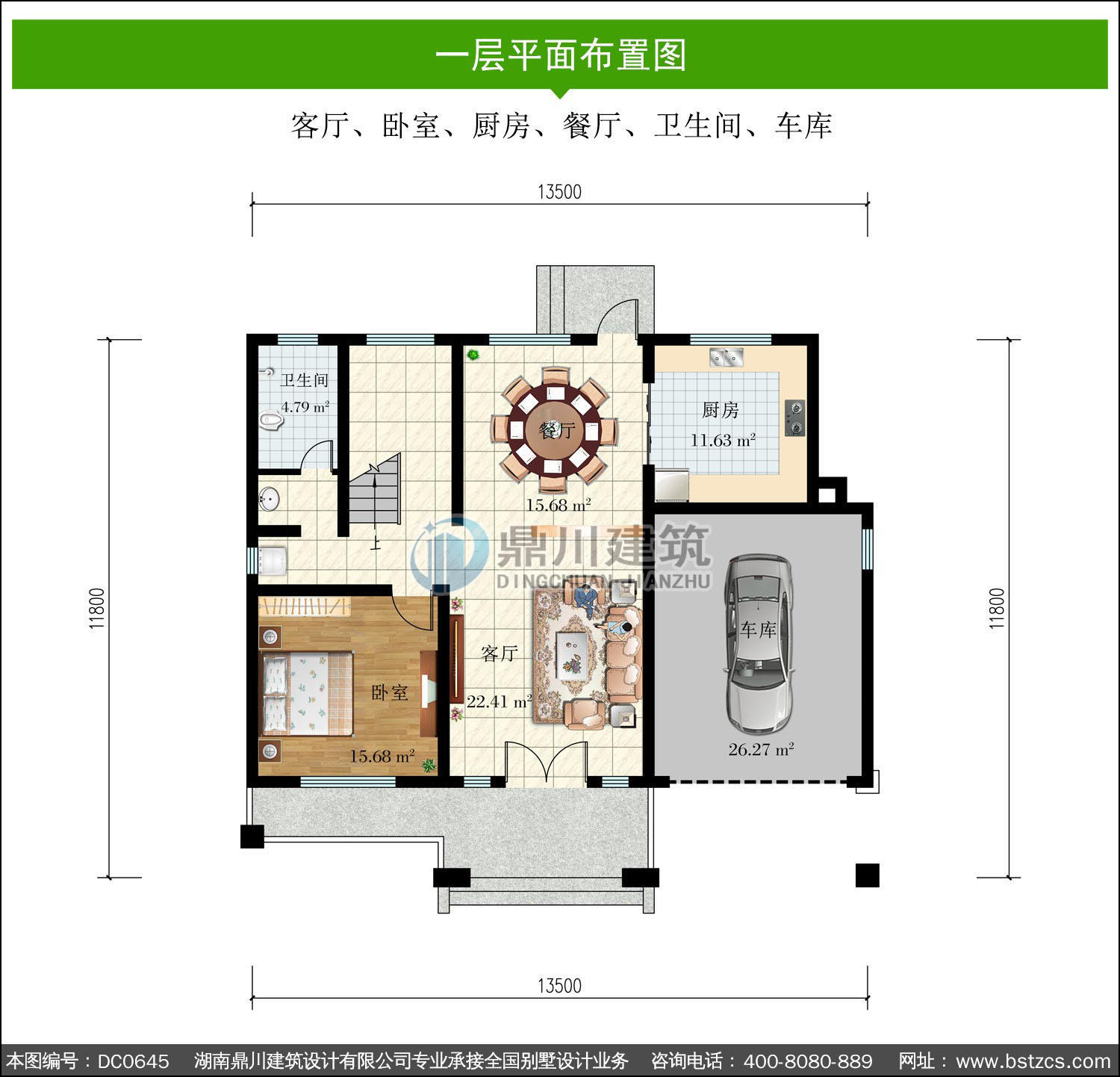 | 一 層: | 客廳、臥室、廚房、餐廳、衛(wèi)生間、車庫 | |||