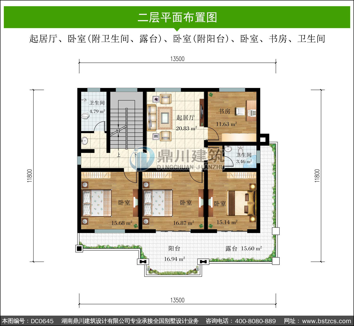 | 二 層: | 起居廳、臥室(附衛(wèi)生間、露臺)、臥室(附陽臺)、臥室、書房、衛(wèi)生間 | |||