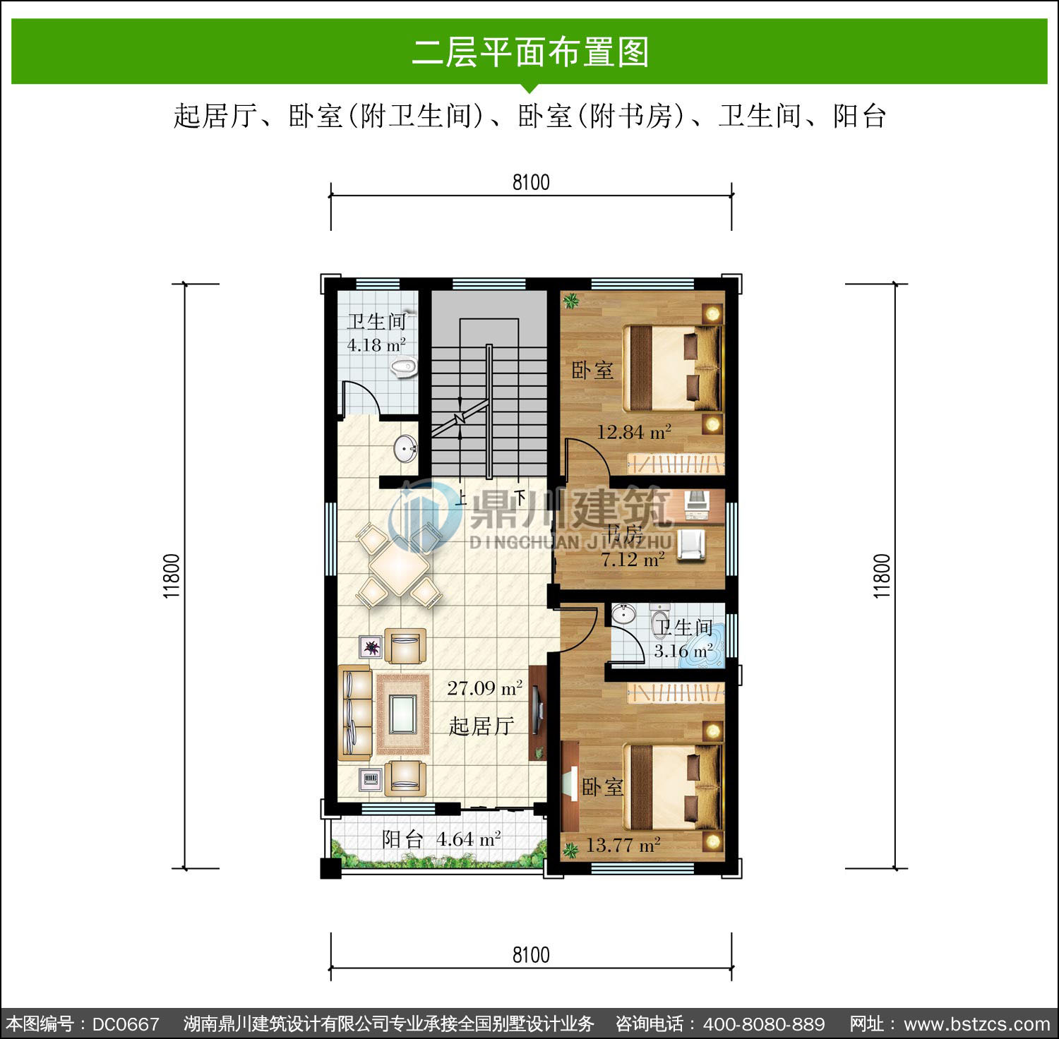 | 二 層: | 起居廳、臥室(附衛(wèi)生間)、臥室(附書房)、衛(wèi)生間、陽臺 | |||