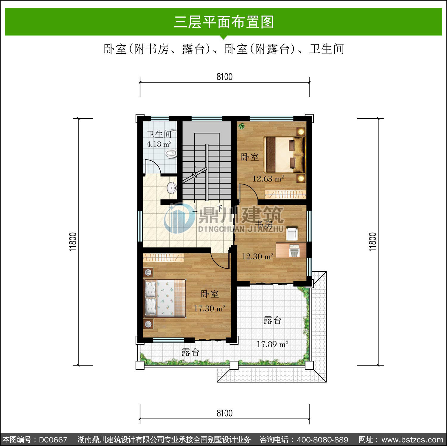 | 三 層: | 臥室(附書房、露臺)、臥室(附露臺)、衛(wèi)生間 | |||