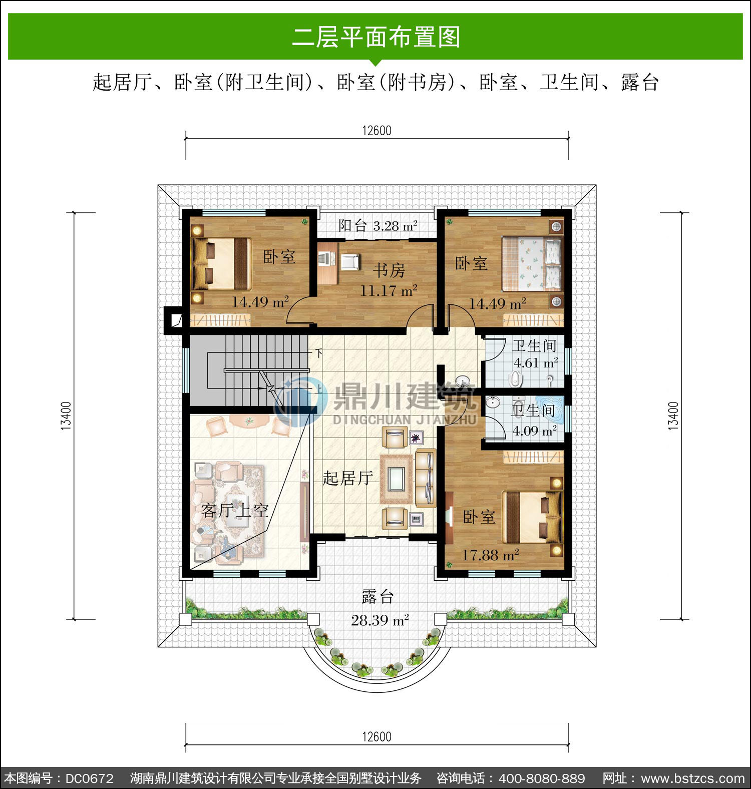 | 二 層: | 起居廳、臥室(附衛(wèi)生間)、臥室(附書房)、臥室、衛(wèi)生間、露臺 | |||