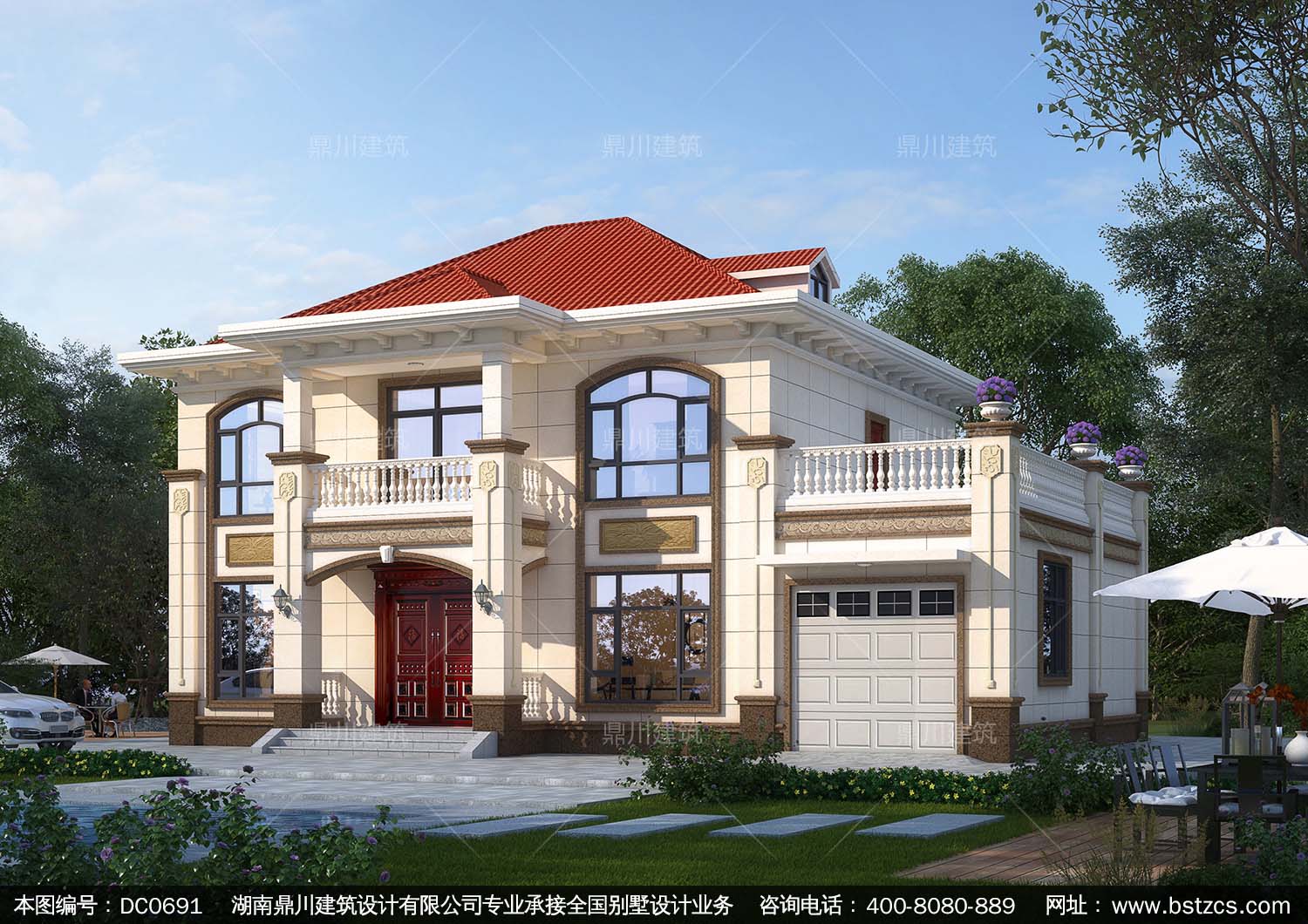 歐式二層帶車庫小別墅設(shè)計施工圖紙_農(nóng)村兩層自建房屋設(shè)計效果圖,鼎川建筑