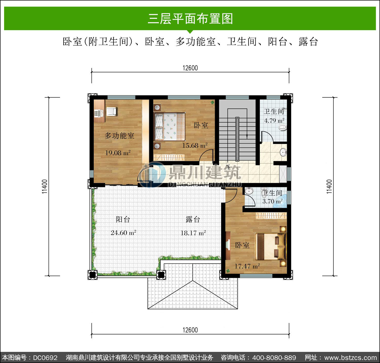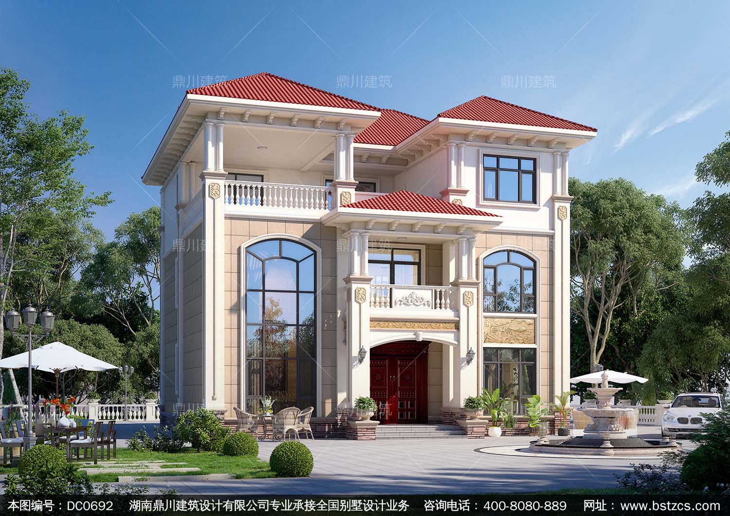 復(fù)式三層帶露臺歐式別墅全套施工圖紙及效果圖_農(nóng)村三層自建房屋設(shè)計(jì),鼎川建筑