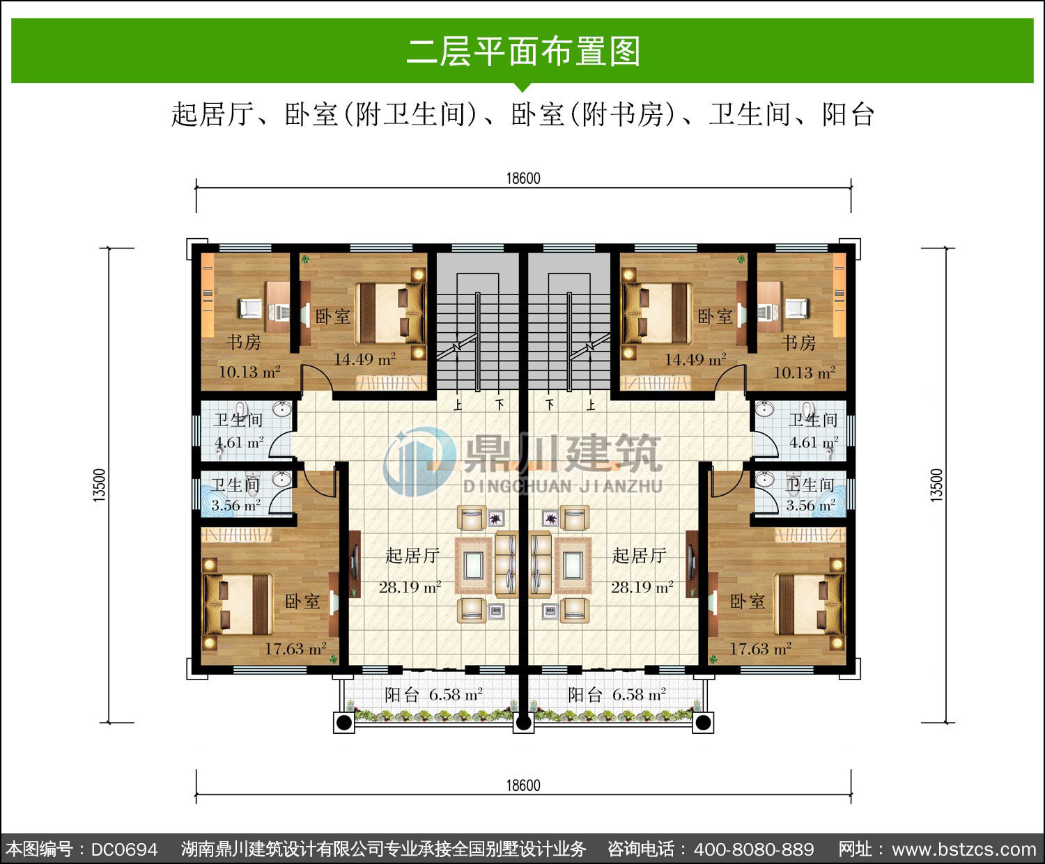 新農(nóng)村歐式三層實(shí)用雙拼別墅設(shè)計圖紙_鄉(xiāng)村兄弟自建房屋設(shè)計,鼎川建筑