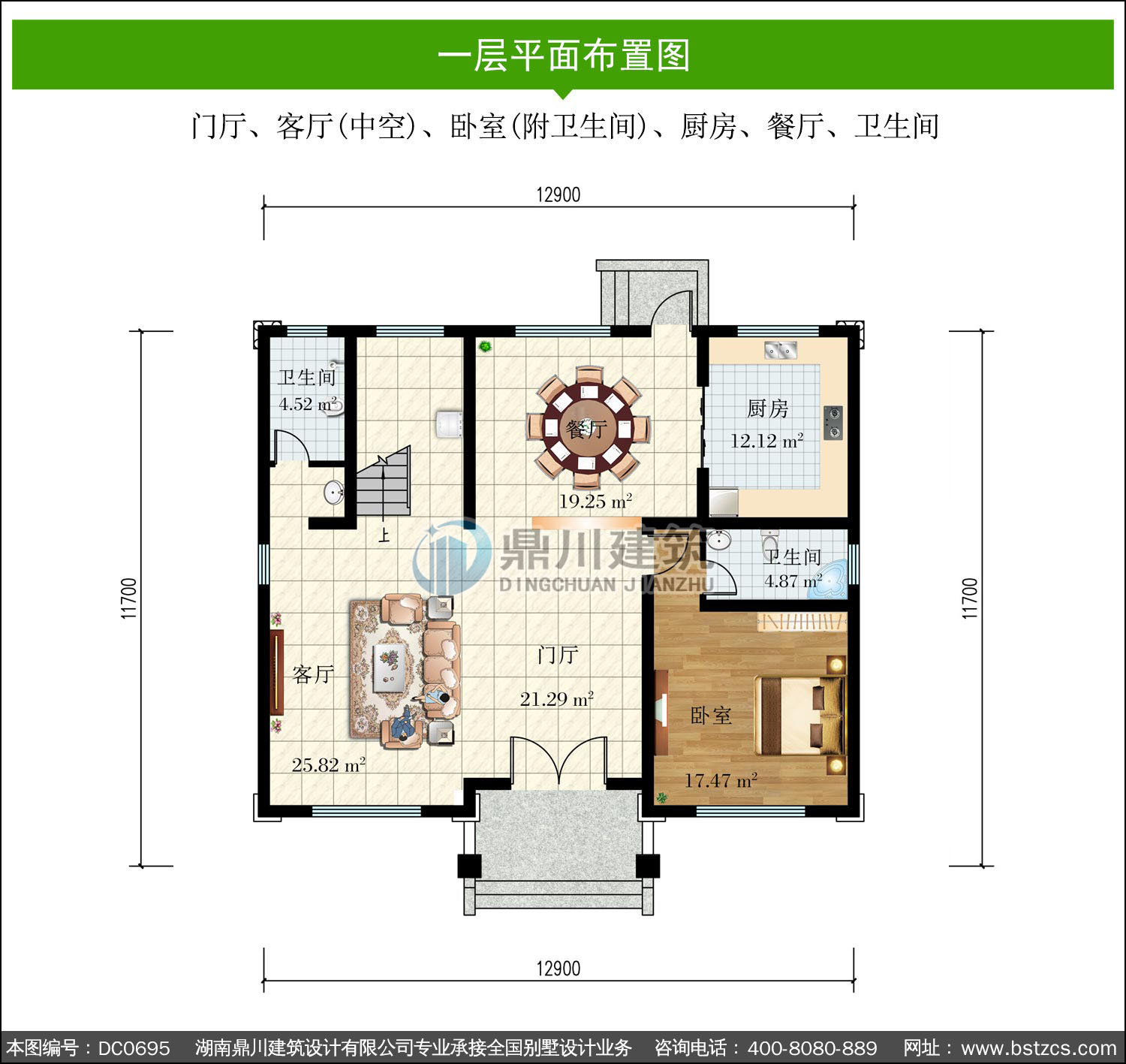 | 一 層: | 門廳、客廳(中空)、臥室(附衛(wèi)生間)、廚房、餐廳、衛(wèi)生間 | |||