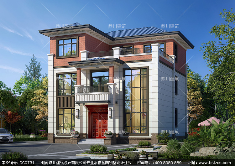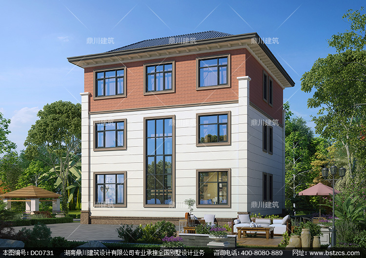 新中式三層帶露臺別墅圖紙效果圖_農(nóng)村自建別墅設(shè)計,鼎川建筑