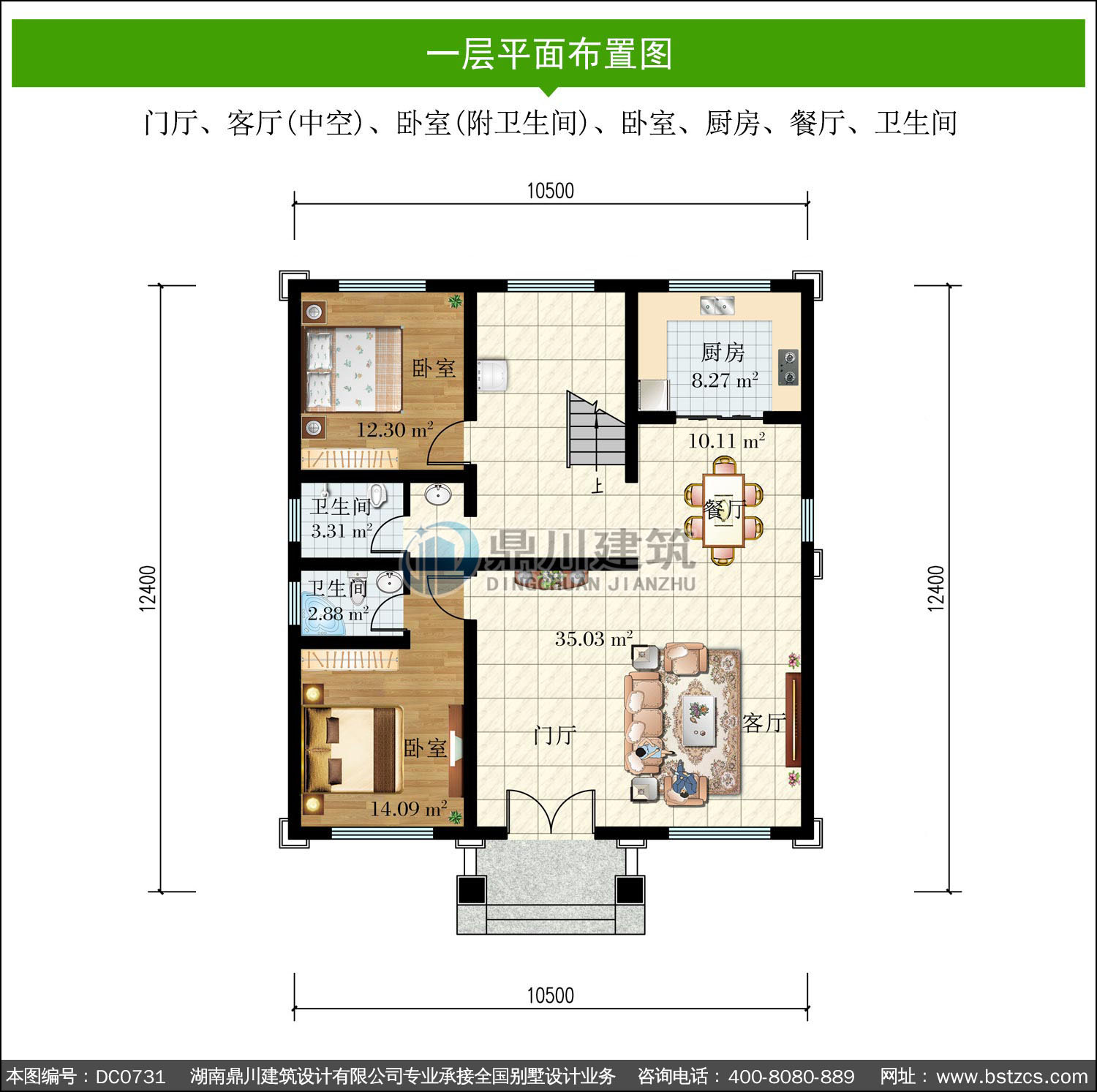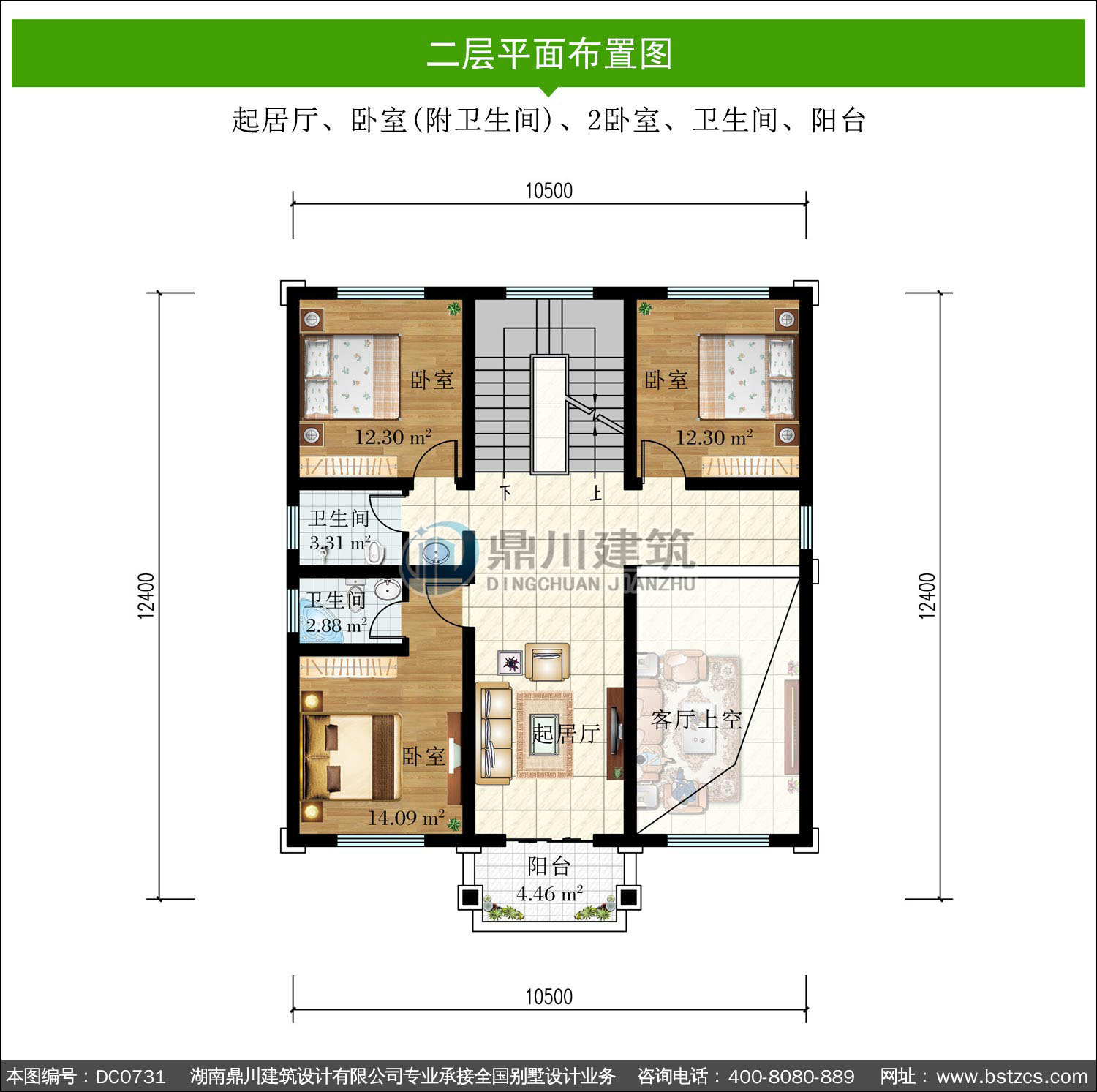 | 開間: 10.5米 | 進深: 12.4米 | 占地面積: 127.65平方米 | 建筑面積: 324.46平方米 |