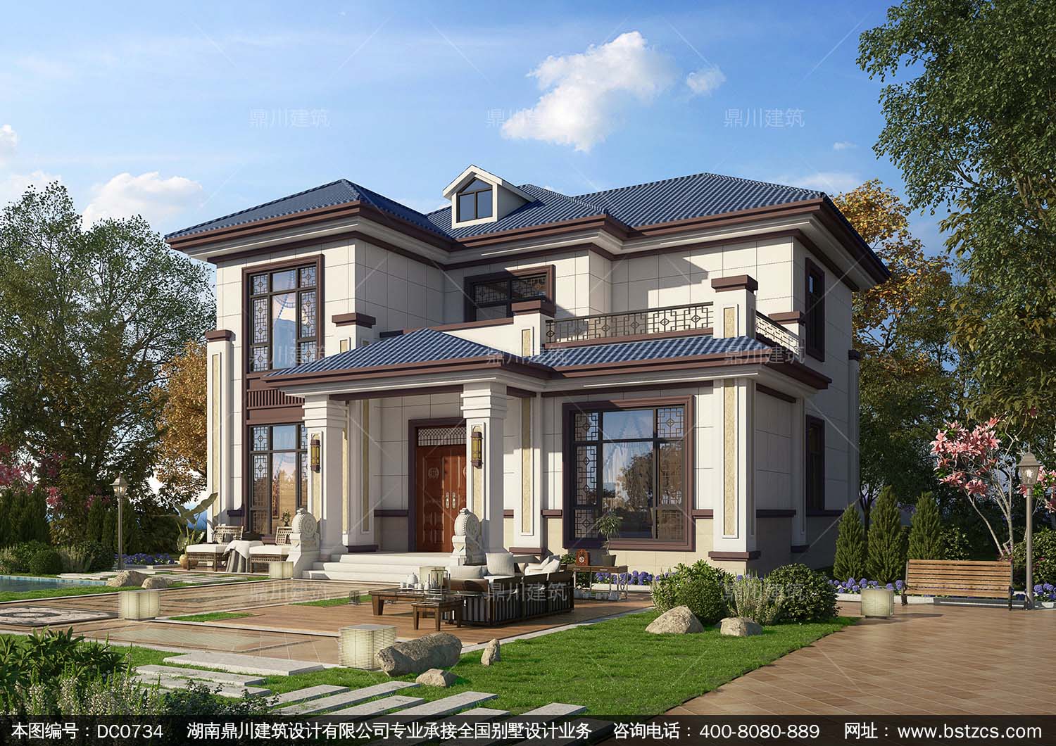 新中式二層帶露臺小別墅圖紙效果圖_農(nóng)村兩層自建房設(shè)計(jì),鼎川建筑