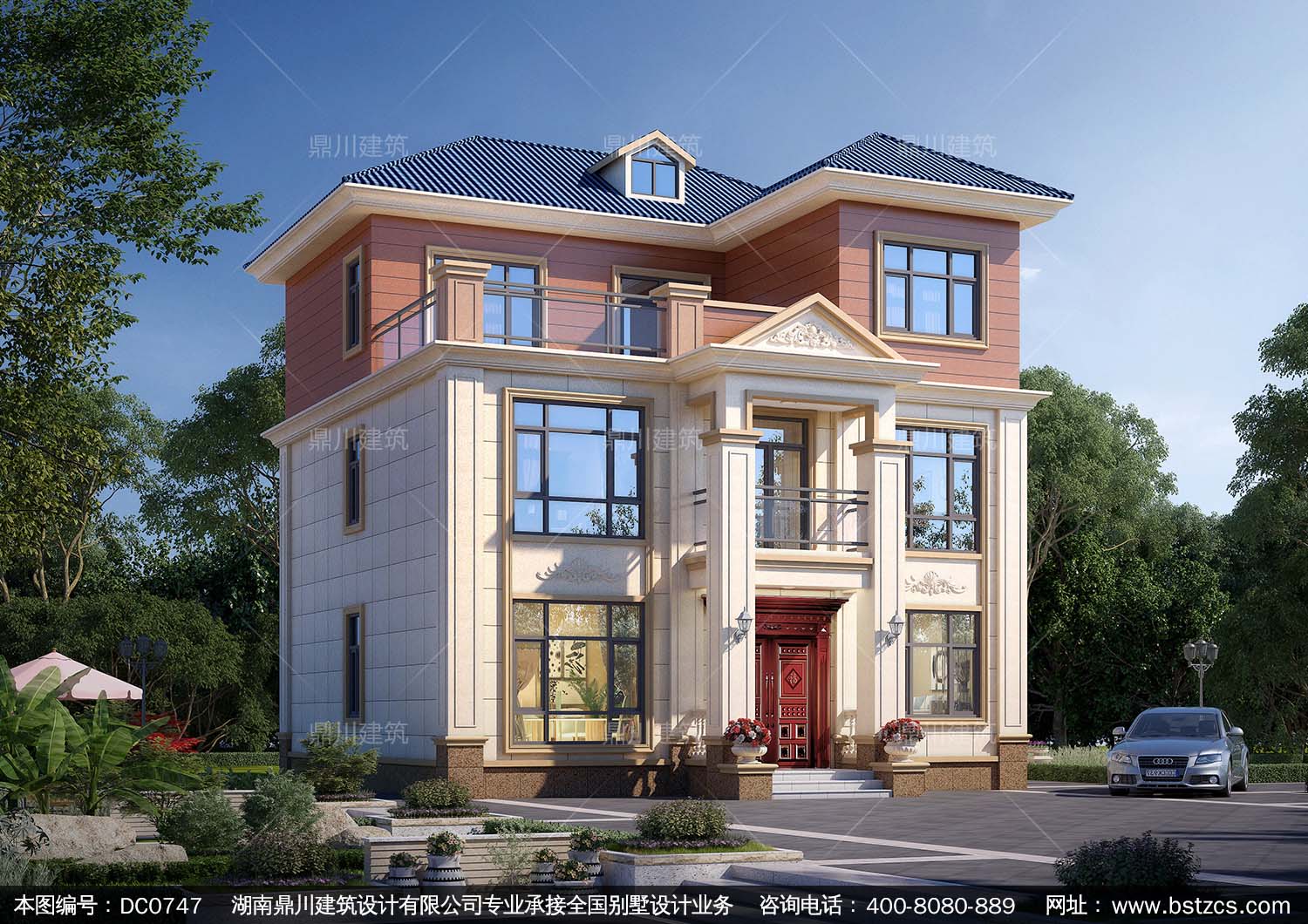 三層新中式帶露臺別墅效果圖及施工圖紙_農(nóng)村自建房設(shè)計,鼎川建筑