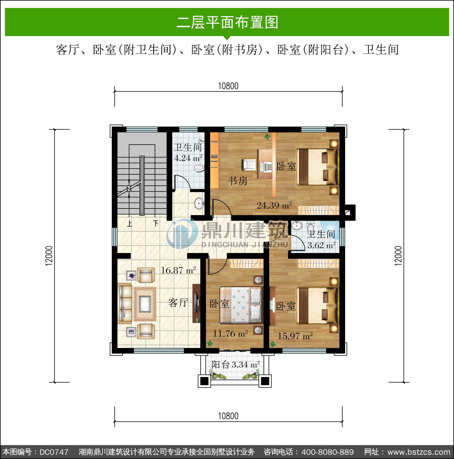 | 二 層: | 客廳、臥室(附衛(wèi)生間)、臥室(附書房)、臥室(附陽臺)、衛(wèi)生間 | |||