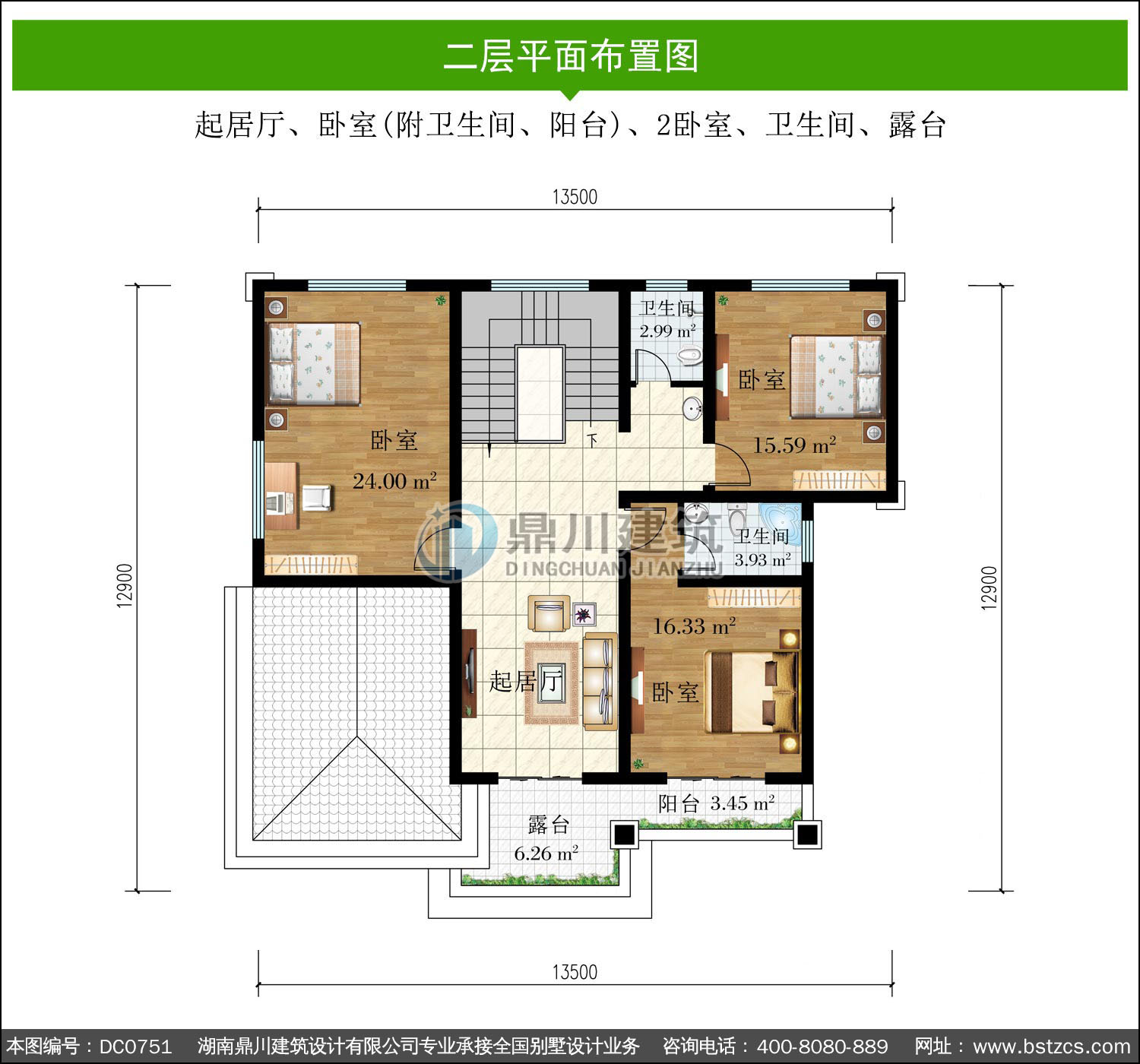 | 二 層: | 起居廳、臥室(附衛(wèi)生間、陽臺)、2臥室、衛(wèi)生間、露臺 | |||