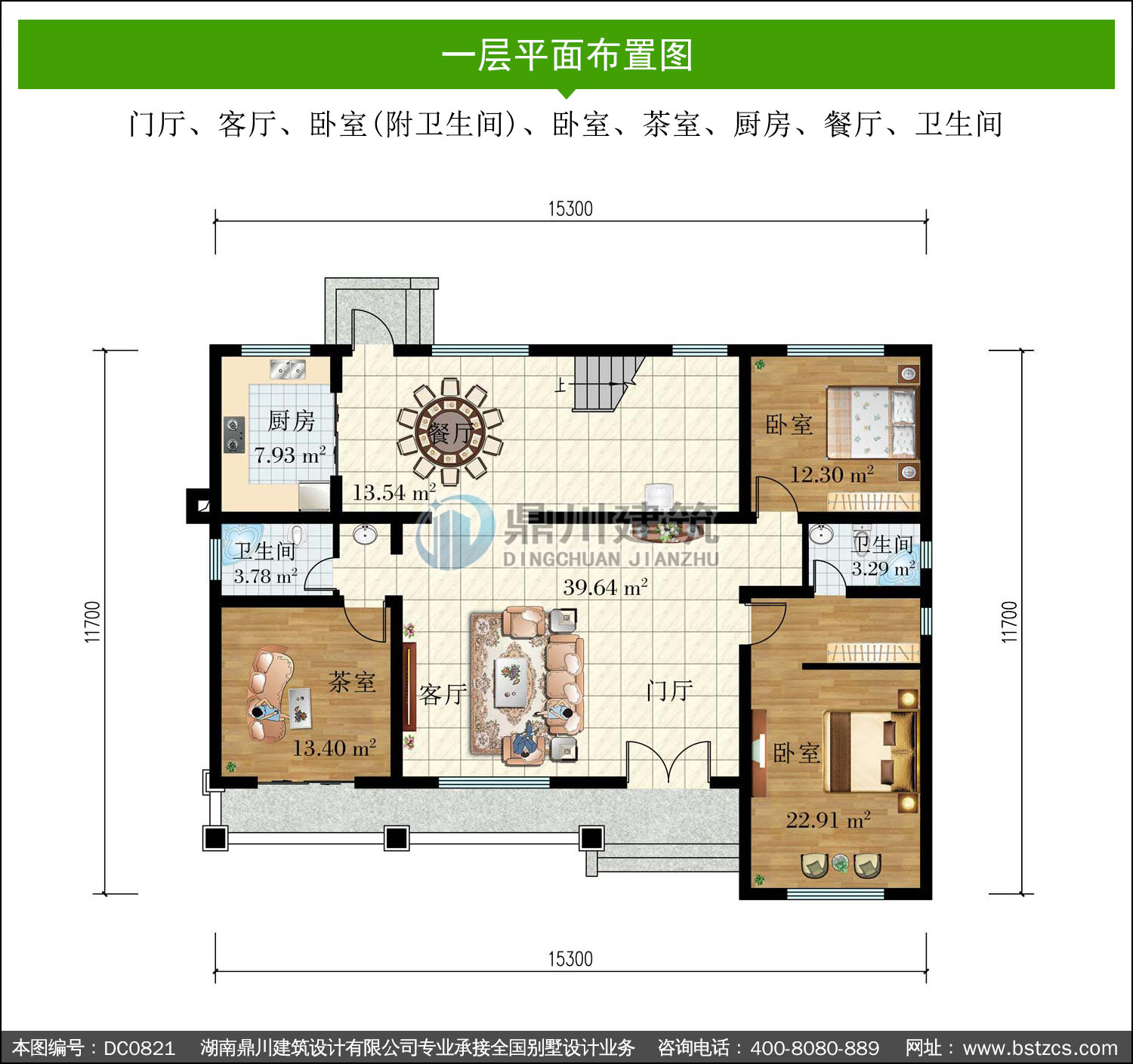 | 一 層: | 門(mén)廳、客廳、臥室(附衛(wèi)生間)、臥室、茶室、廚房、餐廳、衛(wèi)生間 | |||
