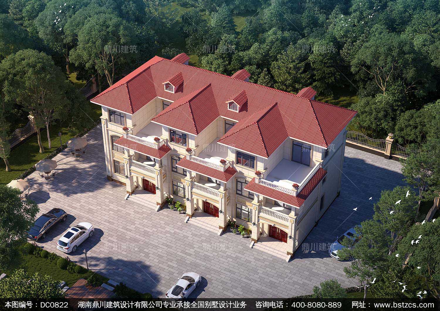 歐式三層雙拼別墅施工圖紙及效果圖_農(nóng)村兄弟自建房設計,鼎川建