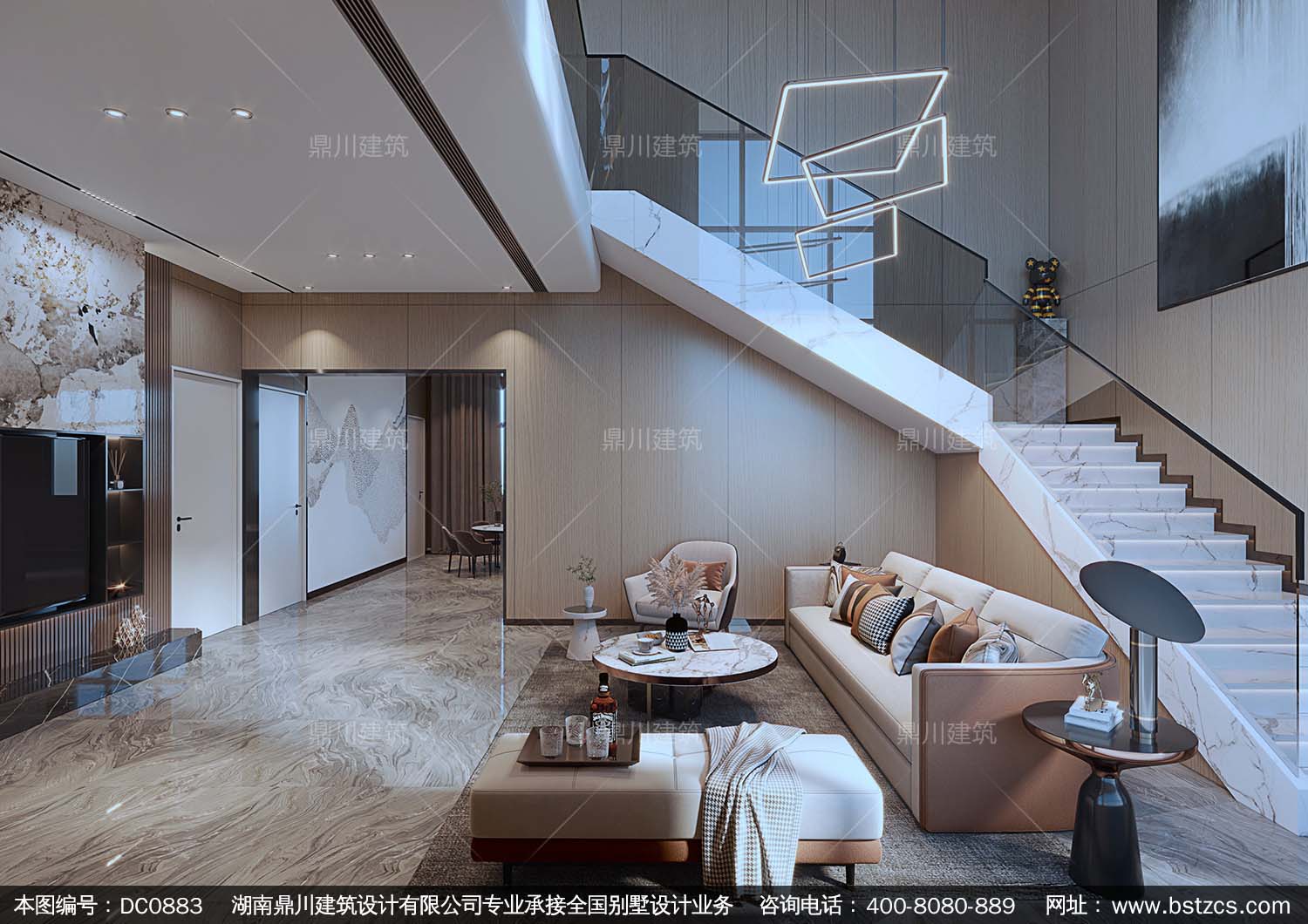 | 一 層: | 客廳(中空)、臥室(附衛(wèi)生間)、臥室、廚房、餐廳、衛(wèi)生間 | |||